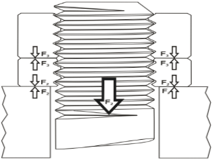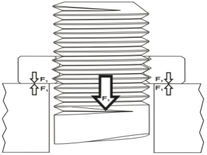 為了達到預(yù)期的防松性能,正確的擰緊也至關(guān)重要。通常我們需要將薄螺母擰緊到設(shè)計的全扭矩的30%-50%,這時將產(chǎn)生一個F1的夾緊軸向力,并作用在薄螺母和支撐面的界面上。
