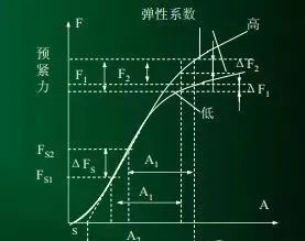 圖中F1是TA法最大螺栓軸向預(yù)緊力誤差,F(xiàn)2是SPA法最大螺栓軸向預(yù)緊力誤差。從圖中可見,采用TA法時(shí),由于預(yù)扭矩TS的誤差(ΔTs=Ts2-Ts1,對(duì)應(yīng)產(chǎn)生了螺栓軸向預(yù)緊力誤差ΔFs),在轉(zhuǎn)過(guò)相同的轉(zhuǎn)角A1后,相對(duì)于兩個(gè)彈性系數(shù)高低不同的擰緊工況,其螺栓軸向預(yù)緊力誤差為F1;即使是彈性系數(shù)相等的,但由于ΔTs 的存在,也有一定的誤差(見圖中的ΔF1、ΔF2)。