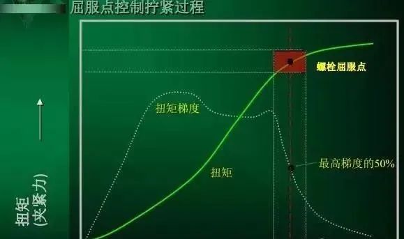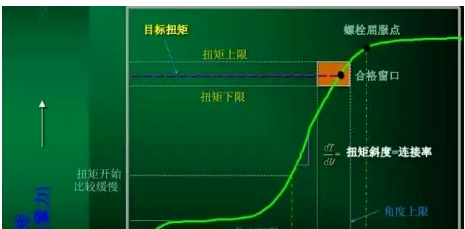 扭矩斜率法是以扭矩-轉(zhuǎn)角曲線中的扭矩斜率值的變化作為指標(biāo)對(duì)初始預(yù)緊力進(jìn)行控制的一種方法。該擰緊方法通常把螺栓的屈服緊固軸力作為控制初始預(yù)緊力的目標(biāo)值。該擰緊方法一般在螺栓初始預(yù)緊力離散度要求較小并且可最大限度地利用螺栓強(qiáng)度的情況下使用。